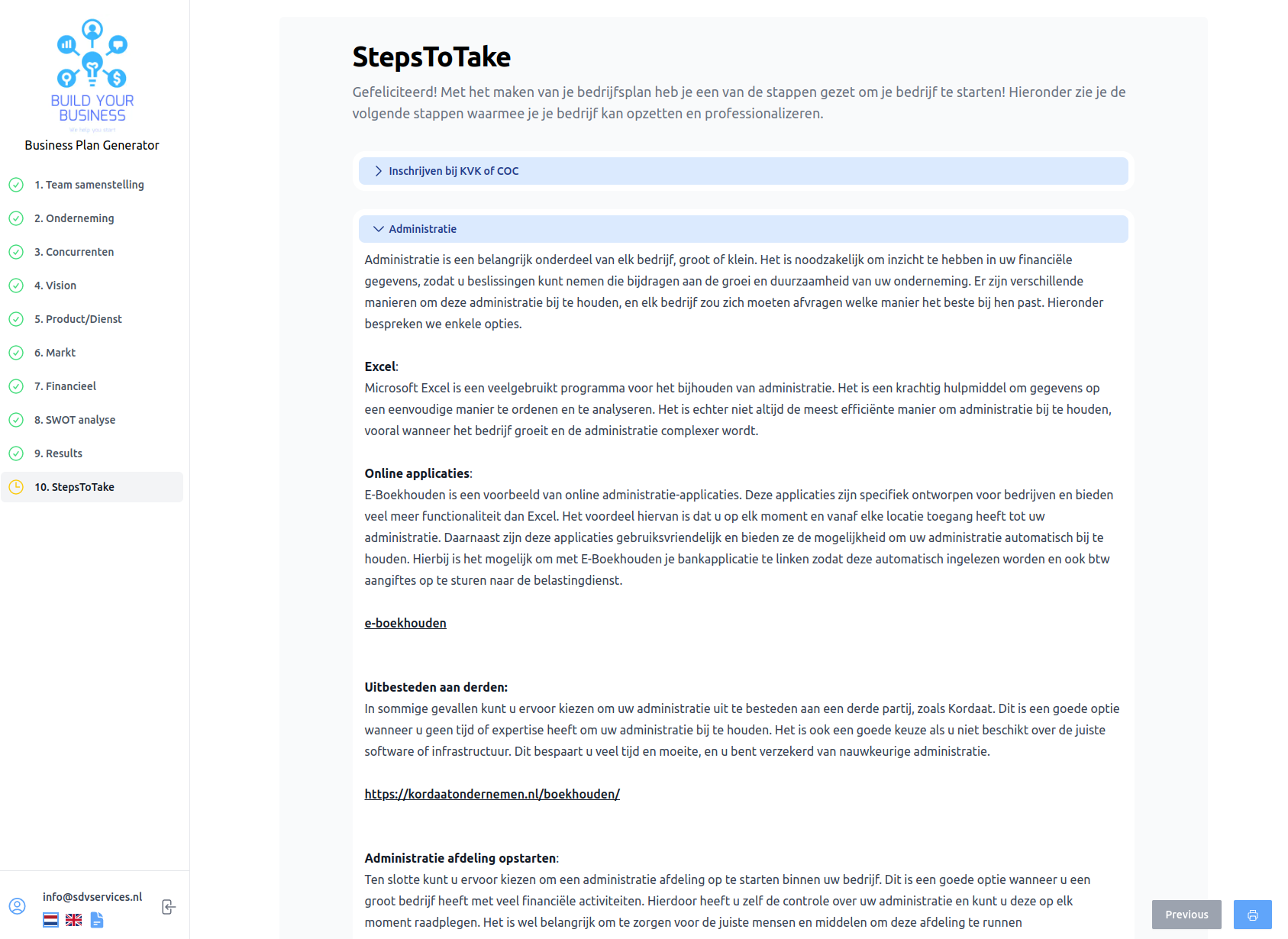 Met de Business Plan Generator kun je snel, geleid en efficiënt een bedrijfsplan maken.